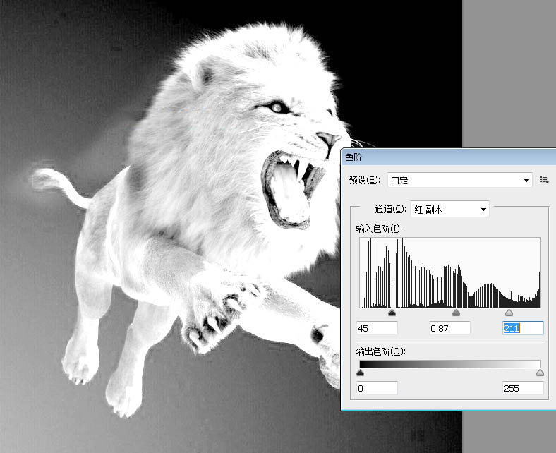 8、按Ctrl + L 对红副本通道调整色阶,先增加整体明暗对比,参数及效果如下图。