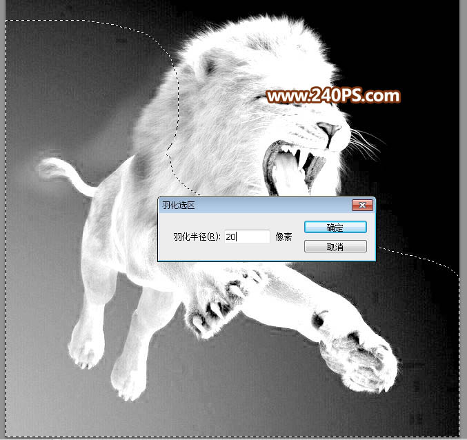 14、局部有灰色的区域,用套索工具选取出来,并羽化8个像素。