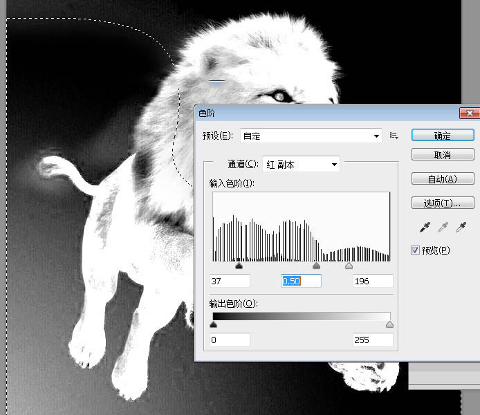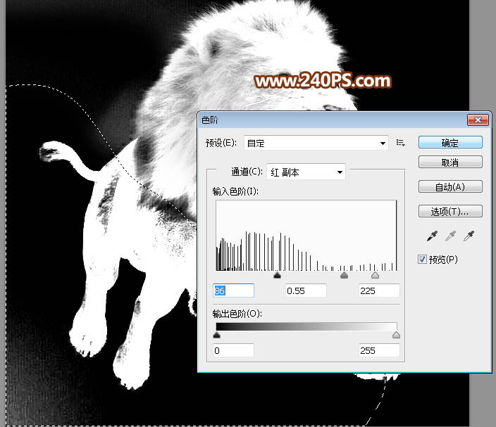 12、按Ctrl + L 调整色阶,参数及效果如下图,确定后取消选区。