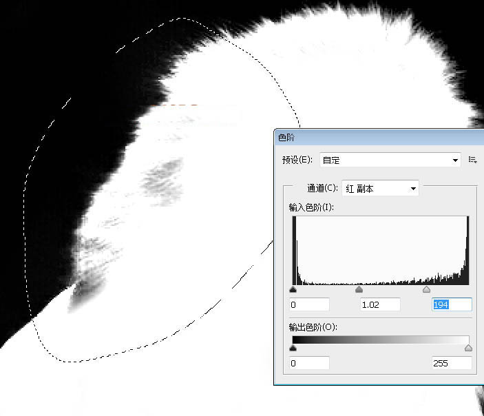 20、如果在这一步直接填充较亮的背景,毛发边缘就会出现很多残留的背景,如下图。