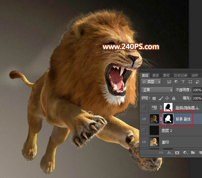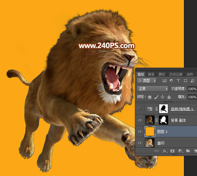 16、用白色画笔把狮子身上剩下的区域都涂白。