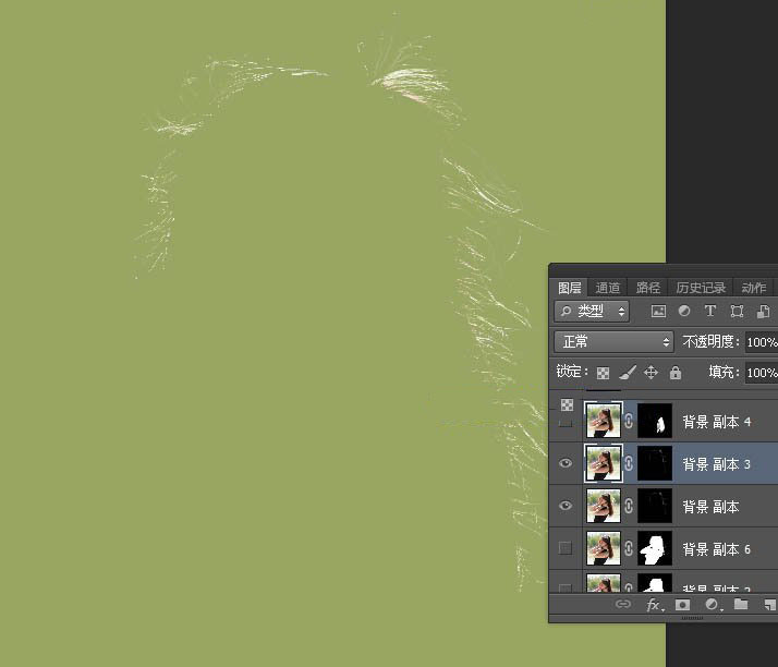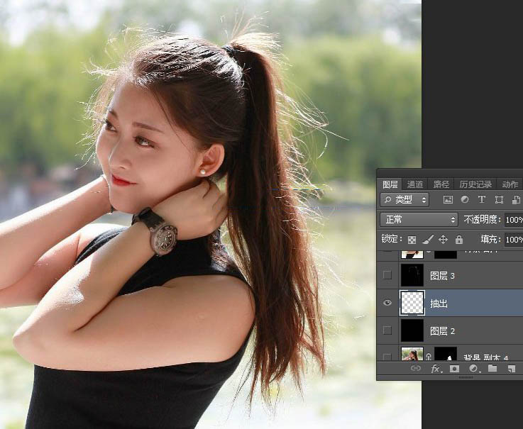 8、把黑色图层与抽出的发丝图层合并为一个图层,如下图。