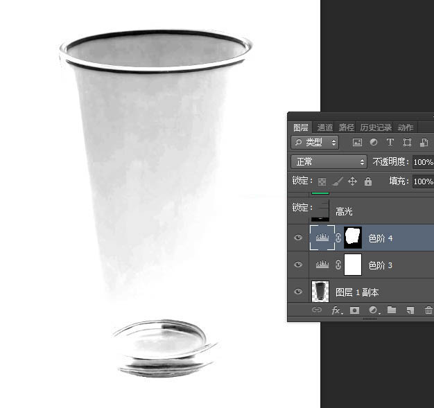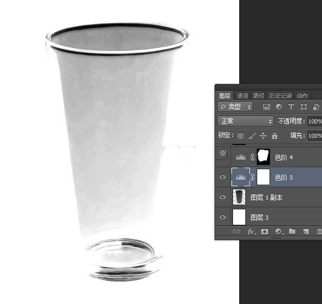 6、回到抠出的杯子图层,并点击图层下面的“创建新的填充或调整图层”,然后选择色阶。