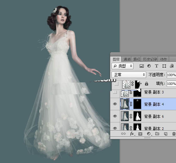 18、把抠出的婚纱图层复制一层,不透明度改为60%,如下图。