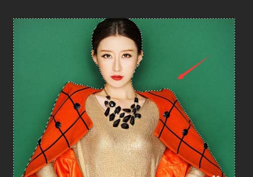 4、使用魔术棒工具,在背景上点击鼠标左键,得到我们需要的选区,如图所示: