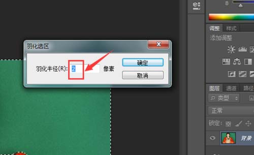 6、点击羽化选项,在弹出的对话框内设置参数为2,如图所示: