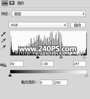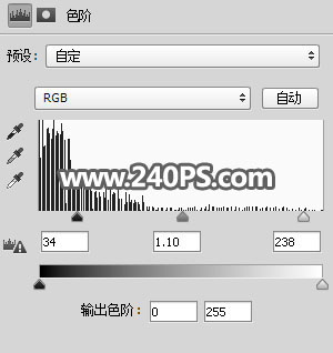 6、创建色阶调整图层,增加明暗对比,参数设置如下图。