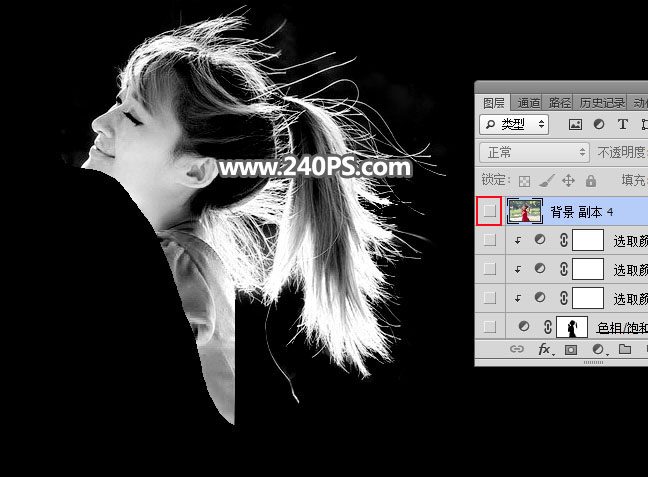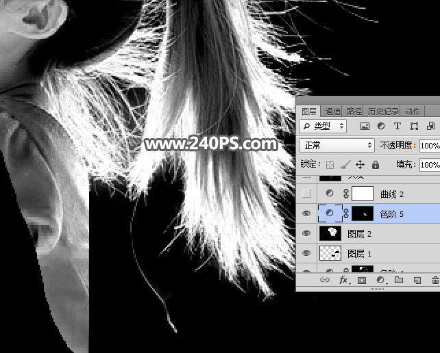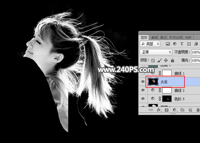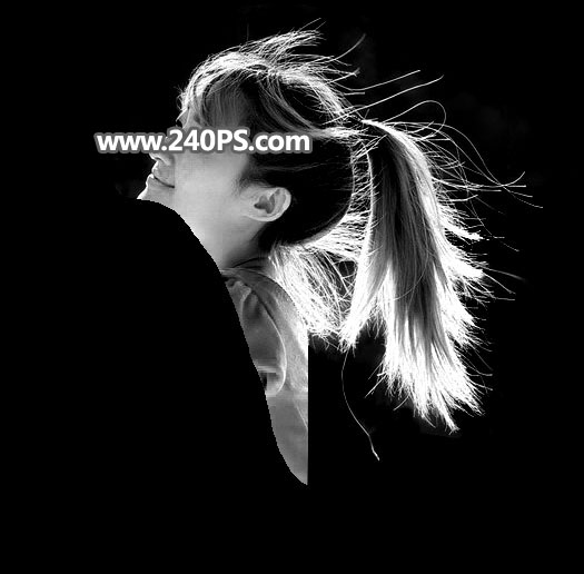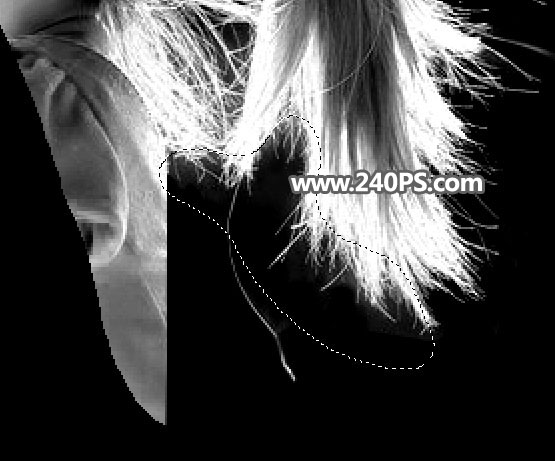 18、新建一个空白图层,用套索工具勾出发丝以外的背景,并填充黑色。