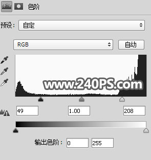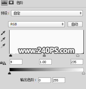 15、创建色阶调整图层,增加明暗对比,参数及效果如下图。