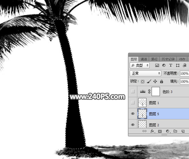 11、选择钢笔工具,勾出树干部分的轮廓,如下图。