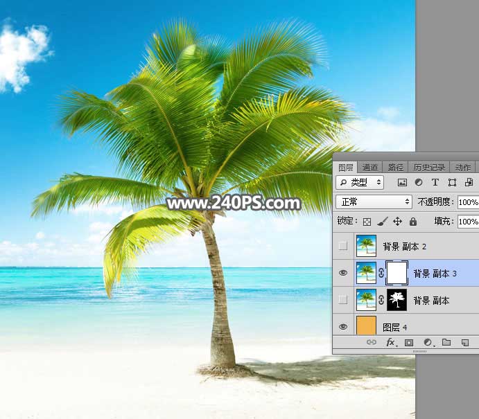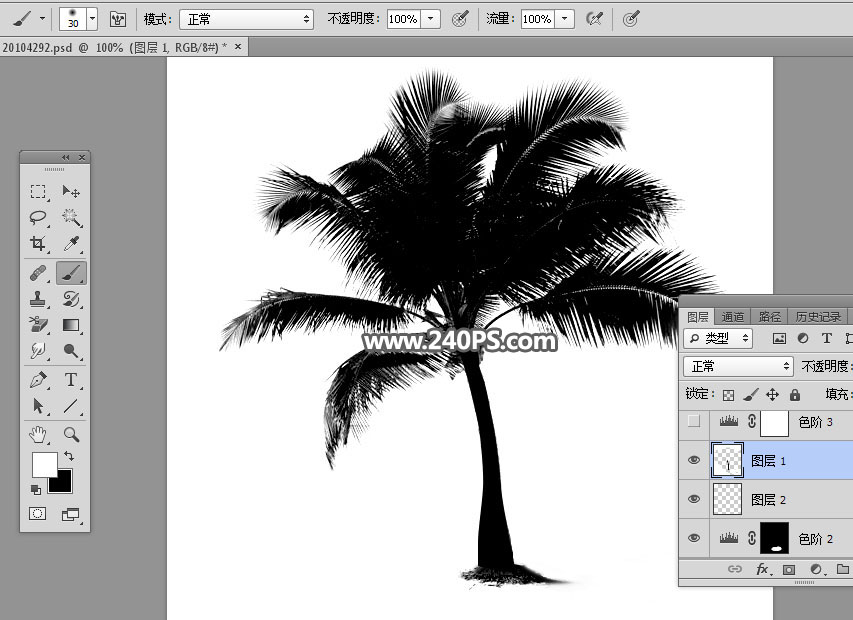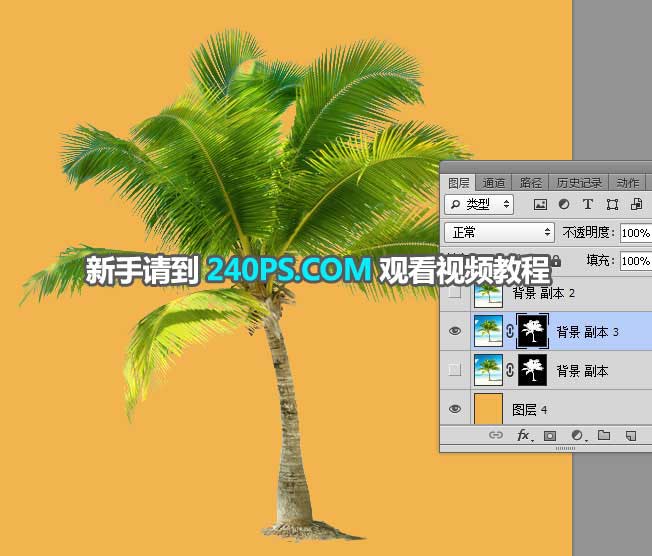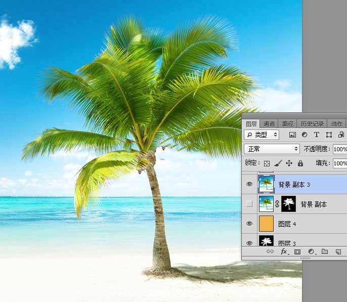 椰树在设计中经常用到,选择一种合适的方法完好的抠出椰树非常重要,那么,photoshop如何用通道抠椰子树呢?前期先要观察各个通道,选择主体与背景色差较大的一个,然后用调色工具增加对比,局部用调色工具或画笔处理干净,这样就可以得到非常完整的效果。