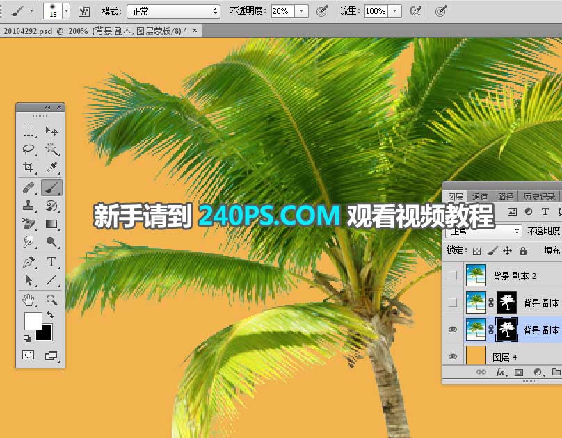 25、把前景色设置为白色,选择画笔工具,画笔不透明度设置为20,然后把有缺失的部分涂出来。