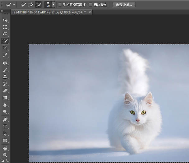 PS利用快速蒙版及调整边缘快速抠出雪地中的白猫