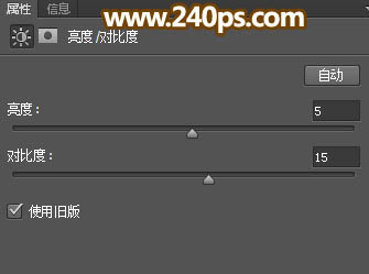 6、创建亮度/对比度调整图层,适当增加亮度和对比度,参数及效果如下图。