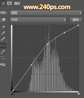 4、创建曲线调整图层,对RGB通道进行调整,把高光区域调亮一点,如下图。