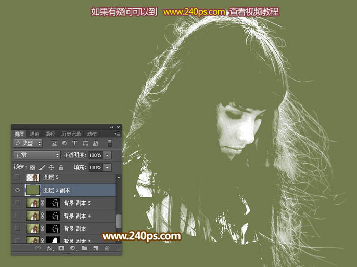 18、按Ctrl + J 把发丝图层复制两层,效果如下图。这时候发丝就非常明显了。