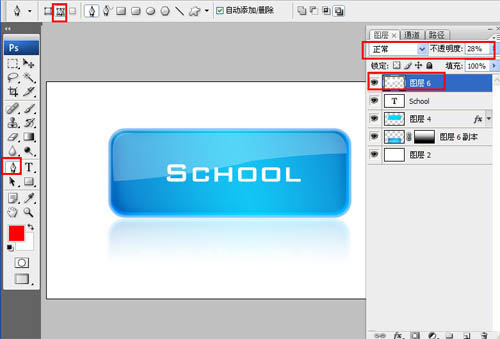 5、单击工具箱中的横排文字工具 ,输入school,然后在工具选项栏上设置字体参考图,如图所示。