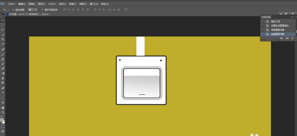 6、然后我们稍作一个小小的创新,可以将上面的螺丝钉也椭圆工具+shift绘制出来,开关上加上小小的细节按钮,还有外接电线也按上面的方法绘制,看上去就更加逼真了。