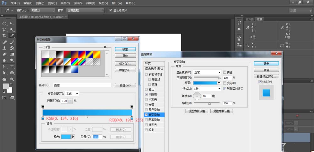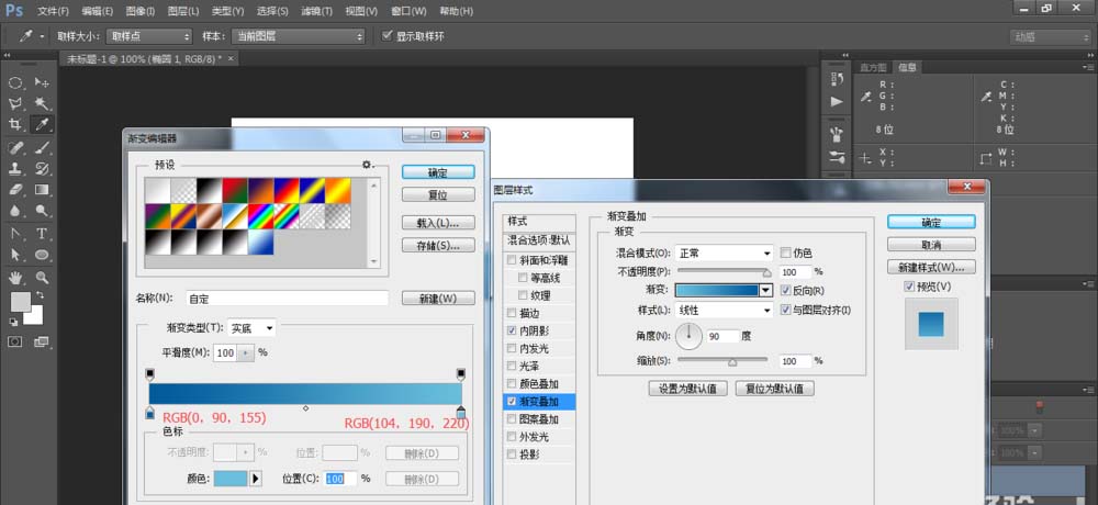2、双击图层缩览图,打开“图层样式”,选择“内阴影”“渐变叠加”,设置如下图