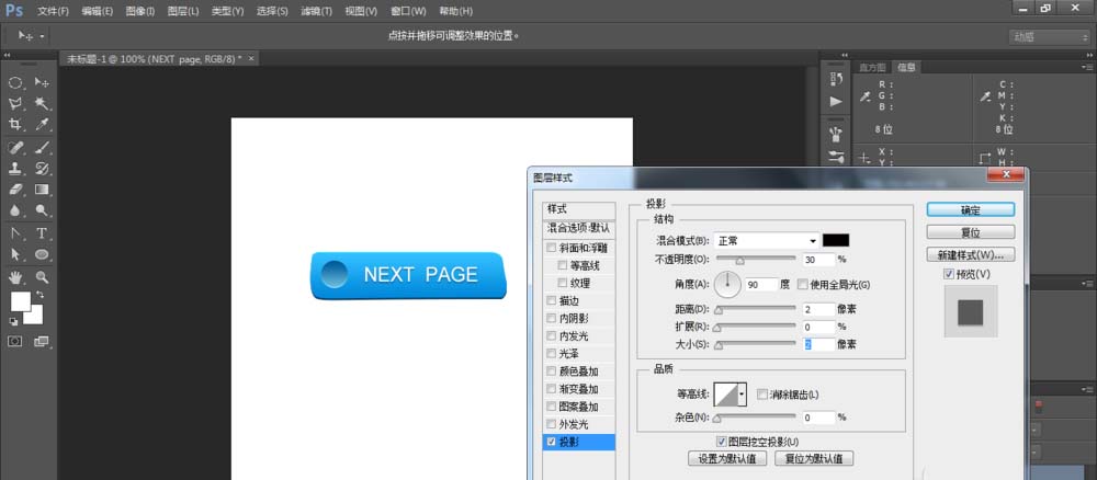 5、选择“投影”,进行相应的设置,设置完成后,点击“确定”,得到如下图所示效果