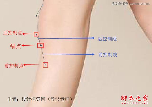 弄懂这个问题前我们先得知道一些基本的概念,以及锚点和控制线的关系,看下图。
