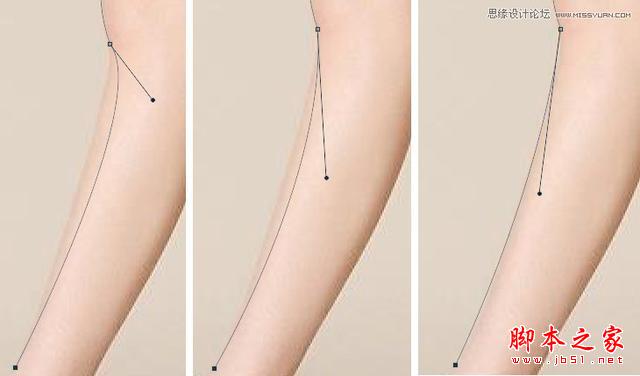 根据上图我们可以看出,前控制线(与主体物大腿之间)不同的角度,以及控制线的长度都决定了路径的弧度以及和主体物大腿的“贴合”长度。如果我们抠图多了,你就有“感觉”了,知道前控制线大概需要多长、多少角度。就好比你去菜市场买菜,你说你要几块钱菜,买菜的阿姨随手一抓、再一颠,秤上一放,刚刚好!这都是长时间训练出来的。不过教父老师有点小建议:
