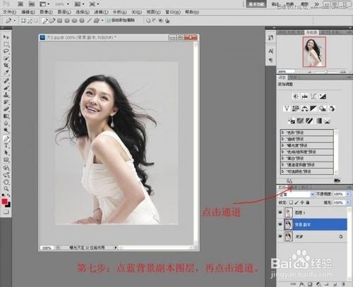 选中背景副本图层,再点击来到通道面板