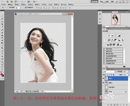 关闭背景及背景副本图层的眼睛,抠图完成