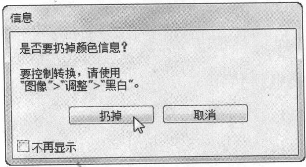 (2) 单击“图像”→"模式”→“灰度”命令,弹出‘“信息”提示对话框,单击“扔掉”按钮,将图像转为灰度模式。