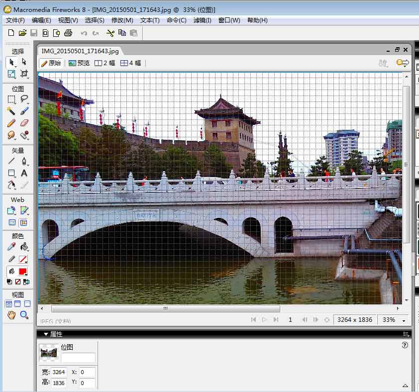 2、打开要处理的图片(将图片拖到fireworks编辑区域或者单击文件菜单,选择打开即可实现在编辑区域打开);
