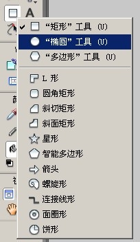 接着 左键长按 左侧工具栏的 矩形工具,在下拉菜单中选择椭圆工具。