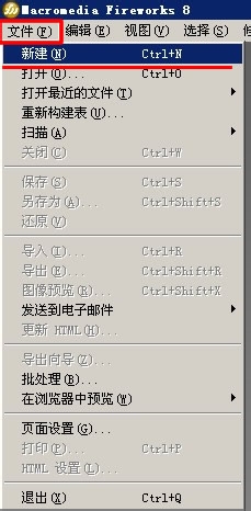 打开Fireworks软件界面,我们选择左上角的文件-新建。