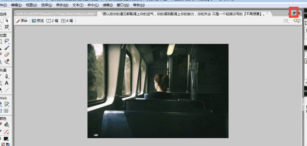 制作一张好看的图文但是又要简单操作的话,我是建议先找好素材哦,比如说我先找好了一张素材图片,然后用fireworks打开即可,大家可以看到左边的工具栏,是不是和ps差不多的呢。