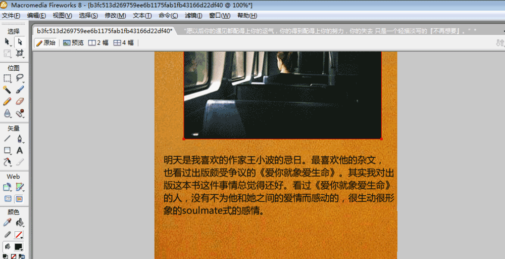 以上就是用Fireworks制作好看的图文排版方法介绍,操作很简单的,大家按照上面步骤进行操作即可,希望能对大家有所帮助!