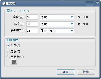 1、打开FW,新建一个空白文档,宽度450,高度300,分辨率72,画布颜色选择白色,如下图: