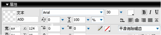 3、在属性面板中更改文字字型、颜色和字体大小,字体为Arial,颜色选择白色,字体大小为30如图: