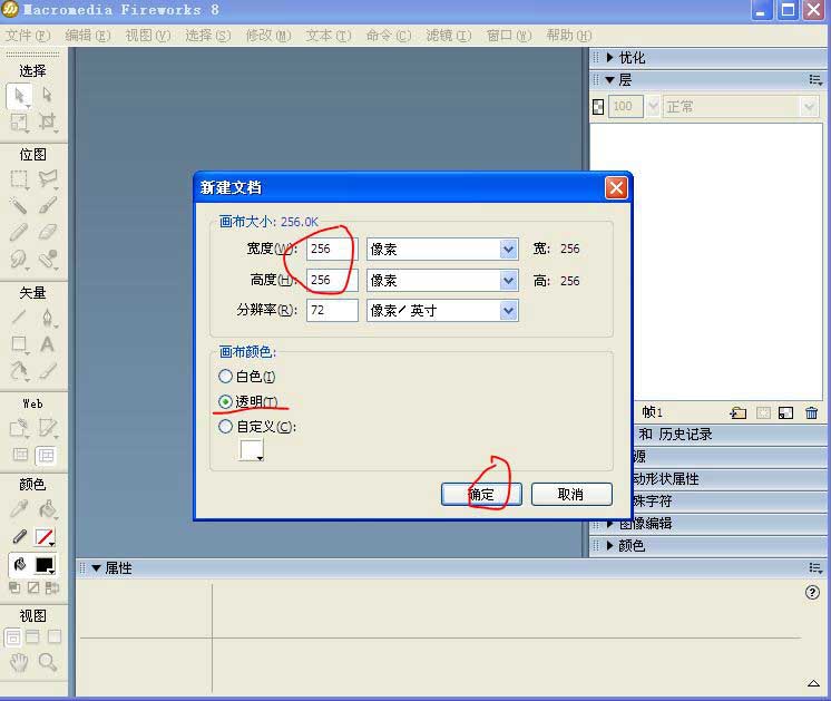 2、分别把长宽设为“256”,当然可以根据自己的需求来设定
