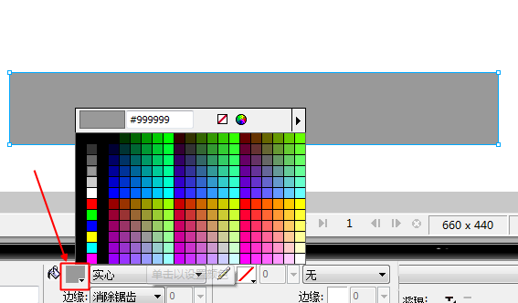 3、用鼠标单击左键选中矩形,在下面的属性面板,就可以调节矩形的大小、颜色等。