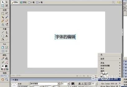 6、写上‘字体的编辑’这几个字,如图所示,在画布的下面有属性栏,可以设置你字体的属性