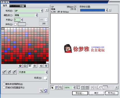 6、最后,单击窗口下面的“导出”按钮,保存gif格式图片就成功了。把做好的Logo上传到你的网站上就可以看到效果了。