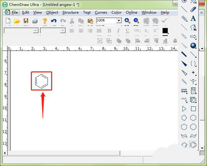 1、打开Chemdraw,看到右侧的菜单栏,点击苯环结构