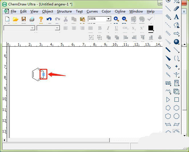 4、出现两个苯环,在点击第一个苯环的边缘,依次反复
