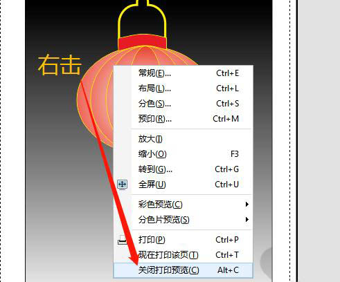 7、退出打印预览,单击退出图标或右击选关闭打印预览。