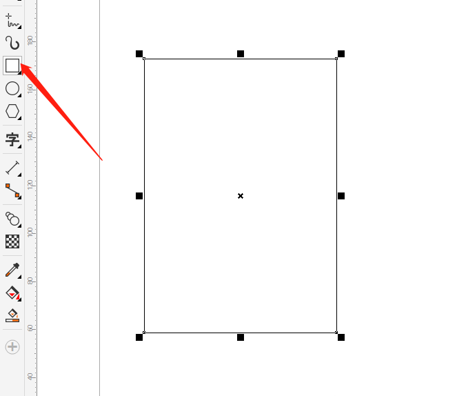 1、打开Coreldraw软件,新建页面后,单击左侧矩形工具,拖动鼠标得到矩形