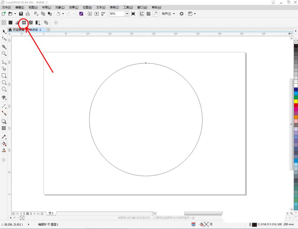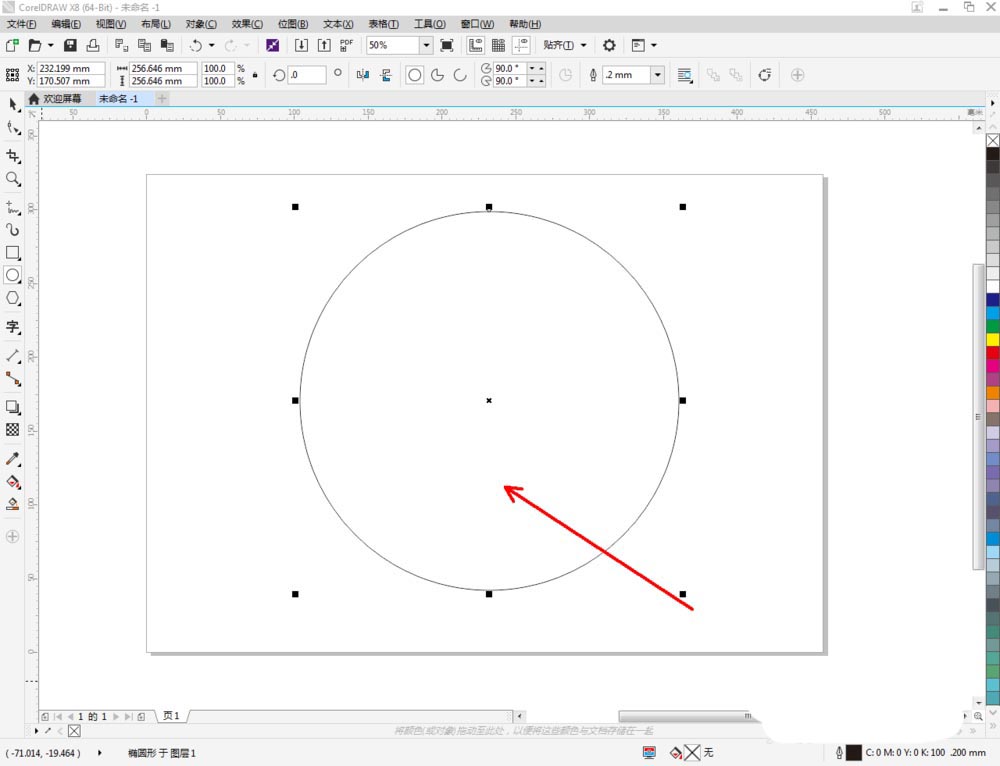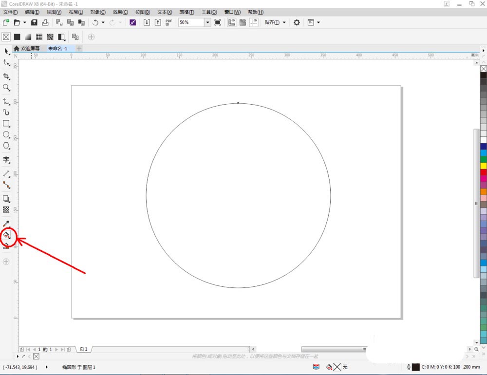2、点击【椭圆形工具】,在作图区域绘制一个圆形图案;