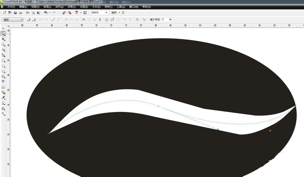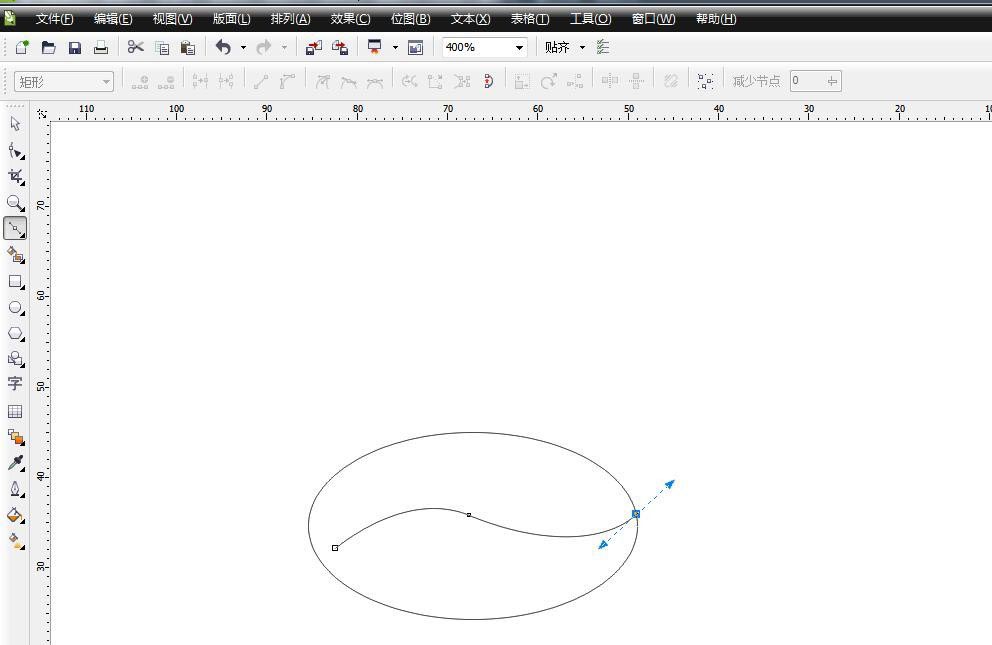 2、绘制一条曲线。在椭圆形内部,选择贝塞尔工具,绘制一条曲线,曲线的平滑度一定要好,要上弯和下弯,如下图
