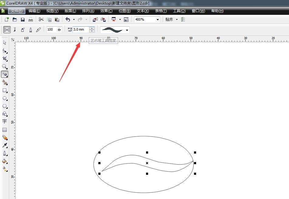 4、设置笔刷的粗细。在属性栏中可以直接输入数值,设置艺术笔笔刷的粗细,我设置为3