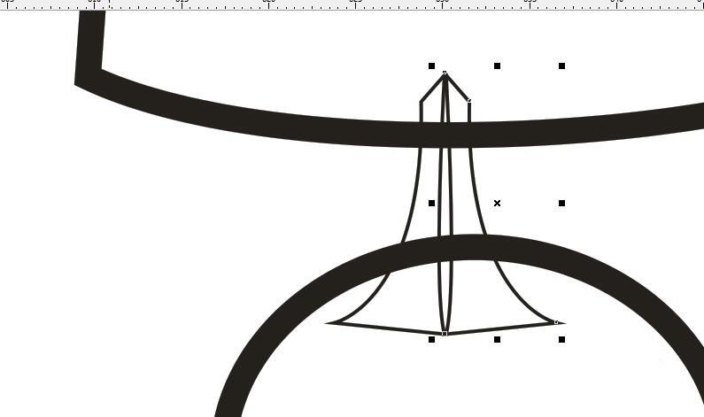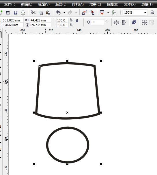 7、执行水平翻转命令。将选中的图形进行水平翻转,然后移动,让两个图形中间的部分相交,如下图所示,然后点击属性栏中的焊接为一个整体