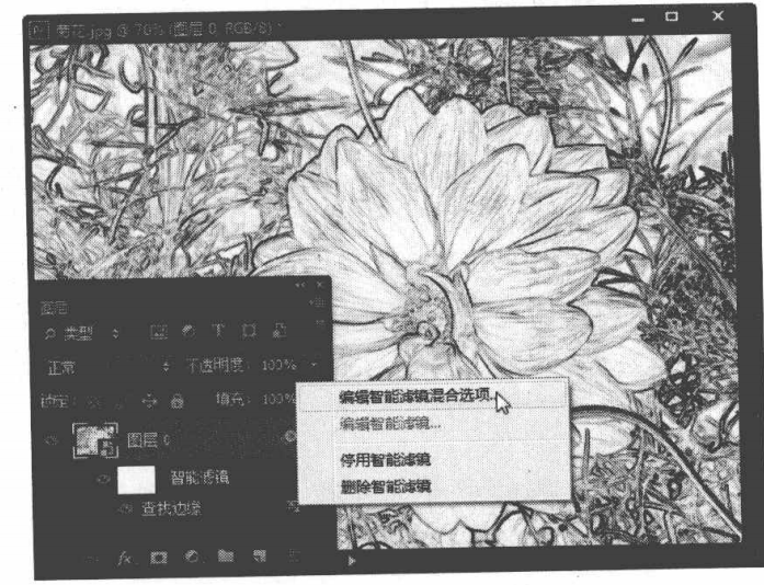 符号上单击鼠标右键,在弹出的快捷菜单中选择“编辑智能滤镜混合选项”命令。