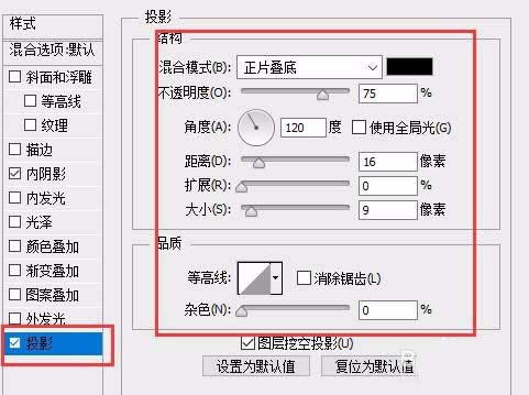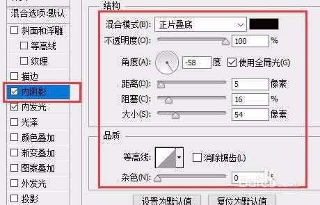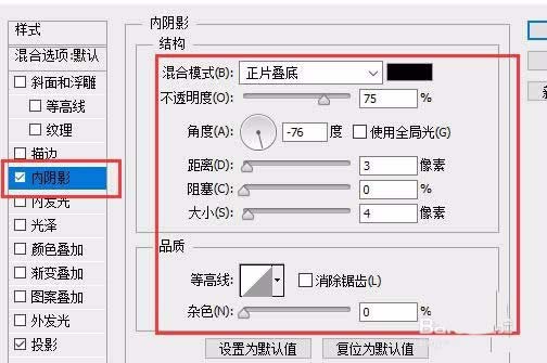 5、双击“椭圆三”图层进入图层样式,调节图层的内阴影和内发光